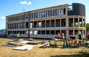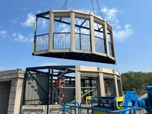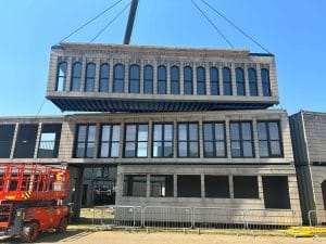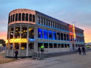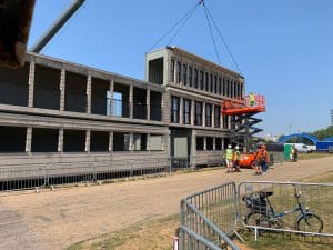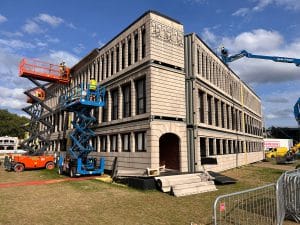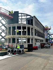 Inspired by the iconic Flatiron building in New York, we designed, fabricated and installed this huge building into the AMEX British Summer Time festival in London’s Hyde Park. Built using eighteen 40ft shipping containers and a custom steel frame at the front of the building, the whole structure was completed in just three months, and installed on-site in just ten days.