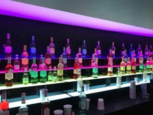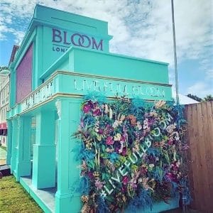 We were asked to re-brand our existing ‘Whisky Bar’ structure at Barclaycard British Summer Time for Bloom Gin. The work involved a full custom re-paint as well as fitting new signage and working with other suppliers to include authentic neon signs on the headers and a giant digital screen on the face of the first floor. Spacial also created and installed a stepped perspex bar with custom LED lighting into the back bar area as well as an illuminated bar front inside the main space. In addition, we also created an artifical plant wall with a custom raised signage displaying Bloom’s #livefullbloom hashtag. Watch a video of the bar in action on Bloom Facebook page here.