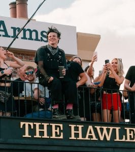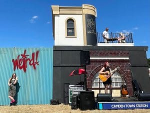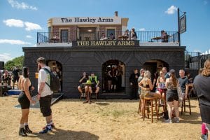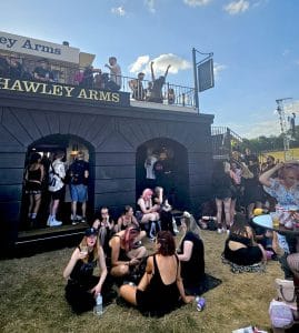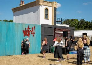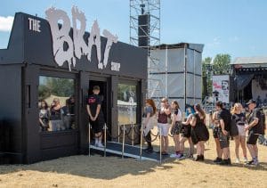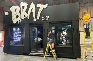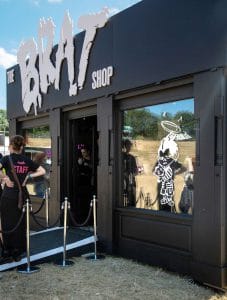 We were asked to design and build a set for the one-day BLUDFEST event at Milton Keynes Bowl for YUNGBLUD. This consisted of the BRAT shop as well as a pub structure based on The Hawley Arms in Camden, a busking station based on Camden Town tube station and a 7 metre BLUDFEST logo sign. The event required an overnight install so we built our set to be “plug and play” with as little extra site work as possible. The set was then de-rigged and taken in to storage the next day. It’s a great advantage of working with shipping containers that our structures can be in and out in a day, whilst still packing the punch of an on-site build.