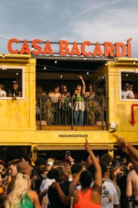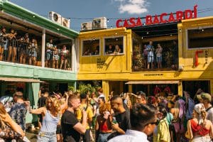 The Casa Bacardi venue is created from ten 20′ shipping containers and features built-in bars, a DJ Booth and a dancefloor area, all styled around a Cuban theme. The venue has been used for a tour of the following festivals: