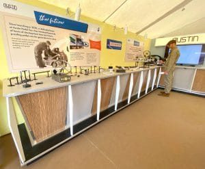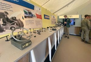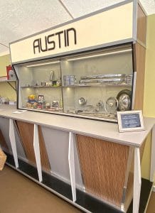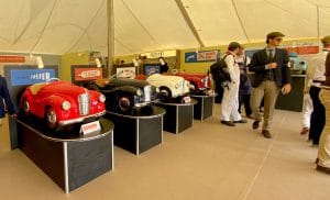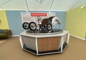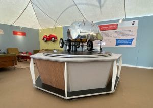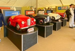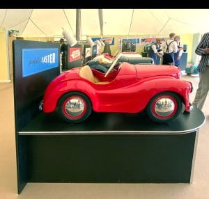 We were supplied with images of our client’s exhibition stands from the 1950s and 1960s which formed the basis of the styling for this project. Tasked with creating bespoke display cabinets and a rotating plinth, we made use of historically accurate melamine laminates and aluminium trim to produce this activation for the launch of the J40 pedal car. The environment was completed with lemon yellow and powder blue fabric covered wall panels to create a peroiod showroom feel, and our client then produced their own graphics and display materials to continue the theme.