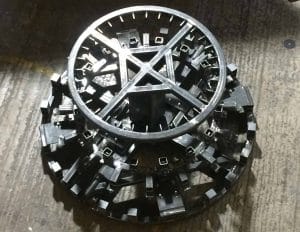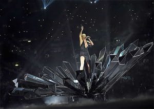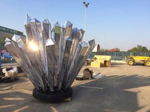We were asked to engineer and build this hydraulic platform stage for Ellie Goulding’s Live MTV EMA performance in Milan. The diamond crystals were custom made steel frames with inset mirrored aluminium composite panels. These were mounted on a custom circular hinged base with hydraulic rams to enable them to gradually open and reveal Ellie singing in the centre. The whole set was transported to Italy and assembled outside prior to installation on stage. The performance isavailable to see here: http://www.mtvema.com/es/video-playlists/p71pr5/ema-2015/6jigu1 or you can see a film from the testing stage at our workshop here: https://youtu.be/W2PWjZWcmU8