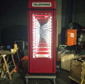 – A replica telephone box with infinity mirror and cabochon lighting system for Keisza.