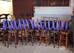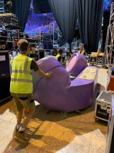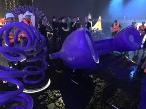 Spacial were asked to supply a giant telephone receiver and coiled wires for Mabel’s MTV EMA performance stage in Seville. The receiver was polycarved, and the cables were made from coiled copper pipe wrapped in foam and covered in a heat-shrink sleeve. All the elements were created and shipped to Seville and then set up on stage by our crew. You can watch the performance here.