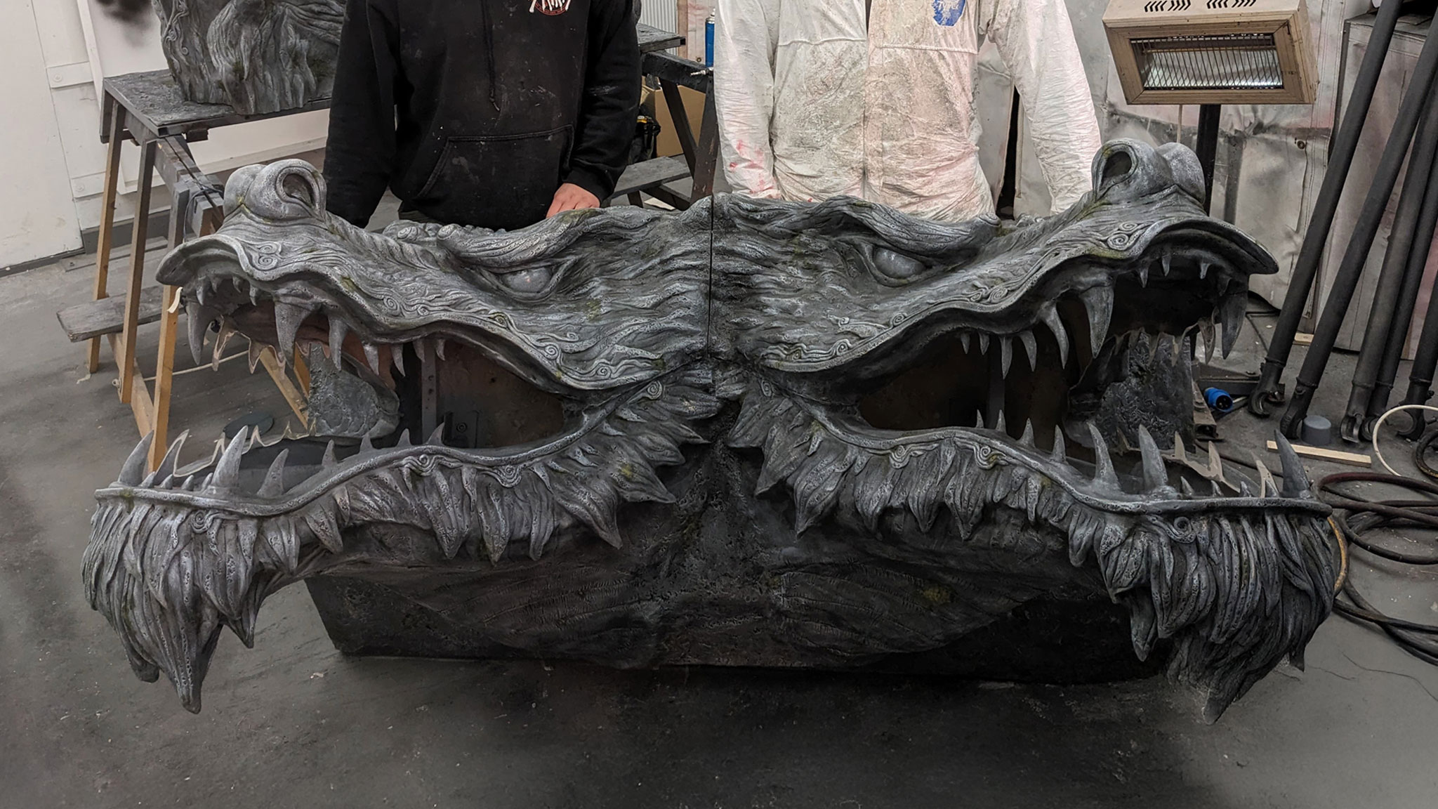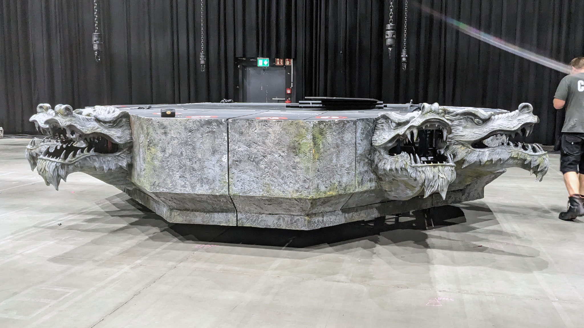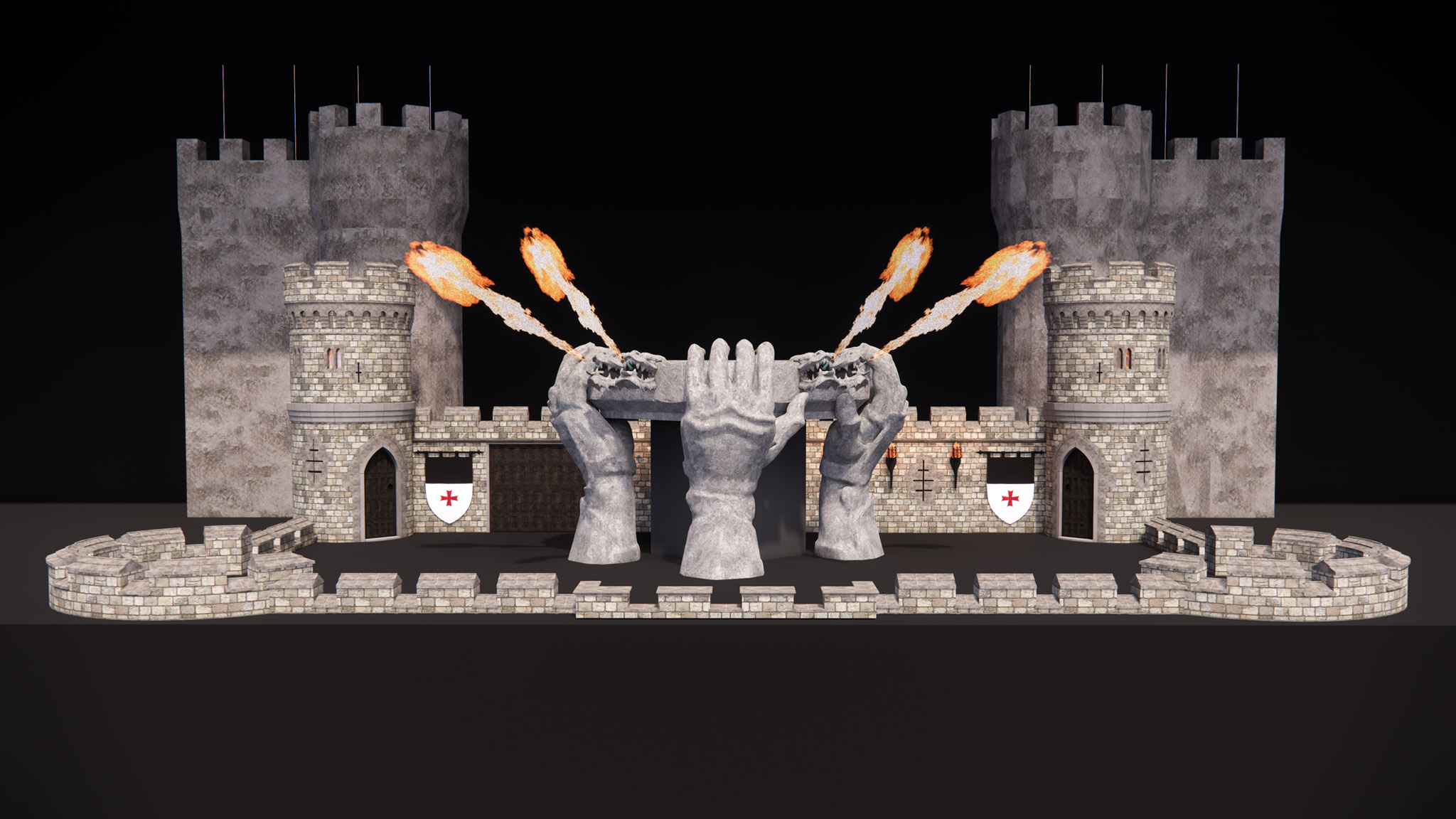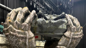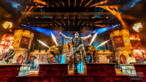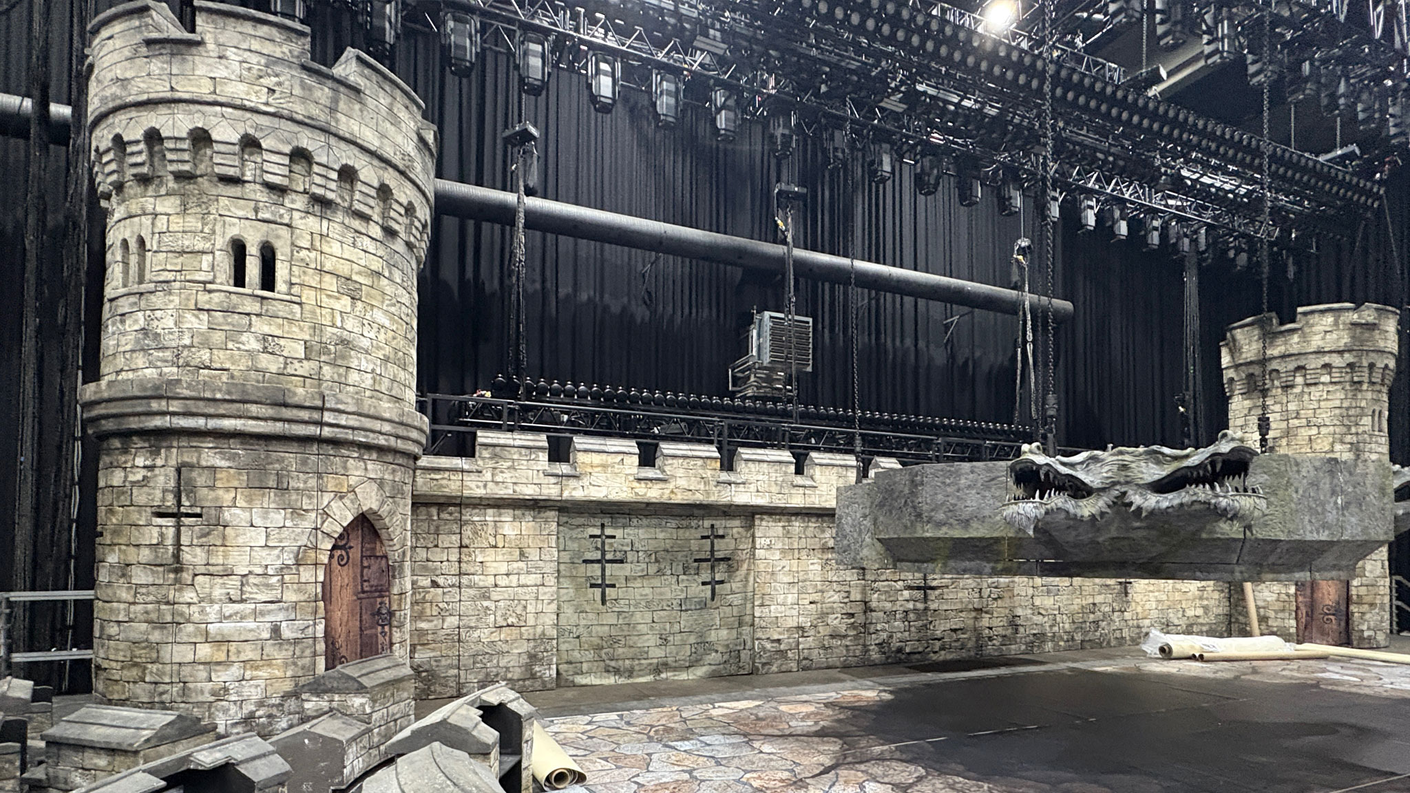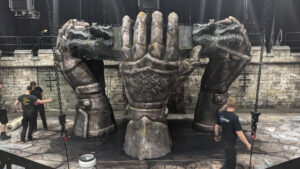 The project first centred around Hannes Van Dahl’s drum riser, featuring four fire-breathing dragon gargoyles built into a stone façade, hoisted into the air during the performance by three giant Airworks hands. As the band’s ideas for the tour evolved, so did the scale of the project. Soon Spacial Installations were designing and creating battlements, stone castle walls and towers, complete with rear walkways and performance platforms.